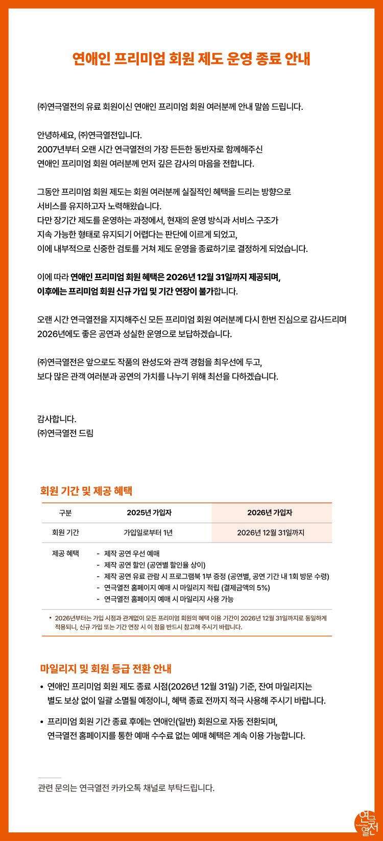 연애인 프리미엄 회원 제도 운영 종료 안내
