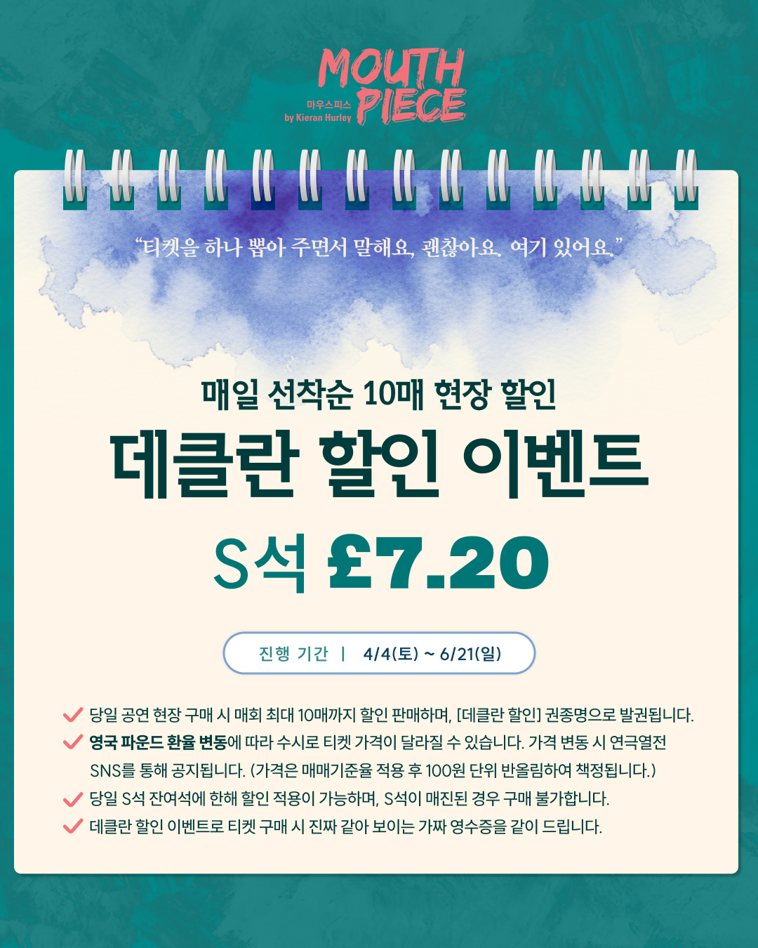 | 연극 <마우스피스> 데클란 할인 이벤트 - 4/4(토)~6/21(일) |