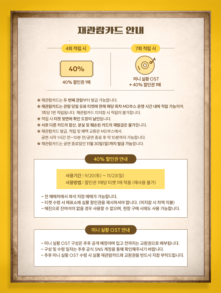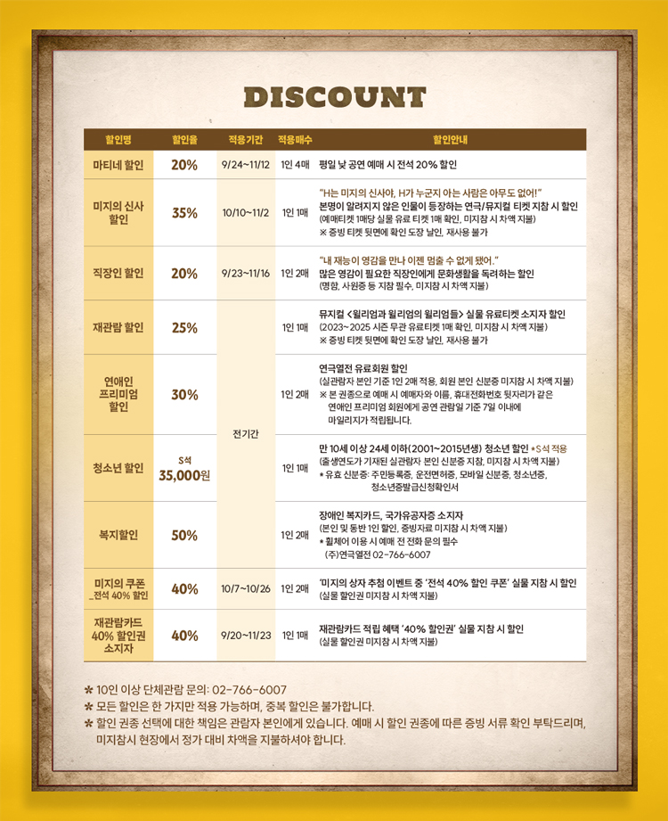※ 11/6(목) 20시, 11/8(토) 14시 공연 단체관람으로 인해 일부 좌석 마감되었습니다.